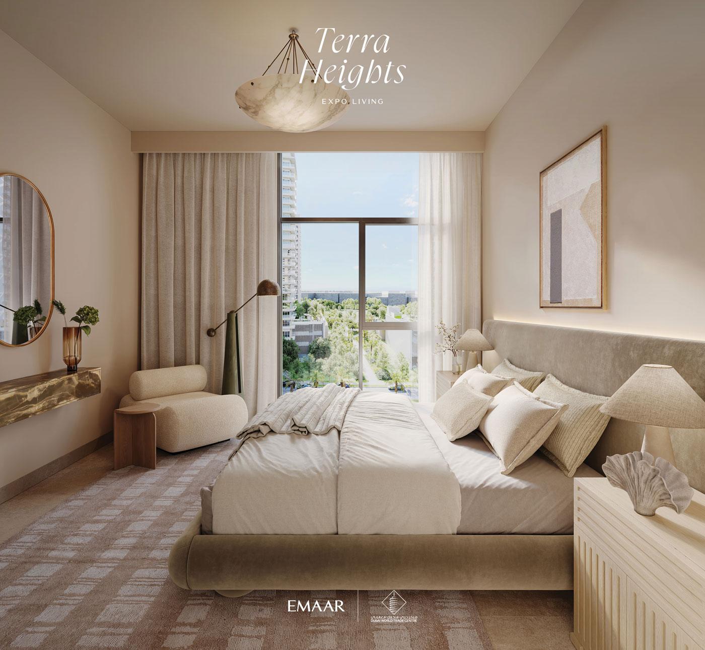 Terra Heights at Expo Living offers a flexible payment plan. This makes it easier to find the home of your dreams. Emaar Properties generally has policies that include down payment and installments during construction. This way, you can spread your savings. This makes finding a luxury home in a good location very manageable. * Pre registration fees 4%