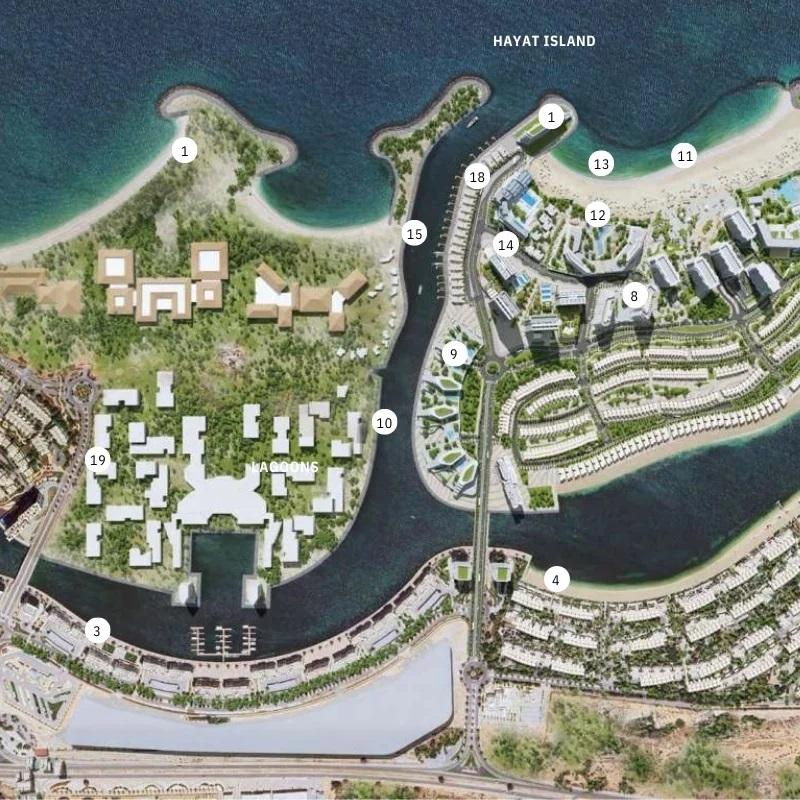 Hayat Island itself is a meticulously planned community that provides residents with an exceptional lifestyle to enjoy and explore the beach and its tranquil surroundings. What sets it apart is the developer’s unwavering commitment to preserving the local environment, flora, and fauna during the community’s development, particularly in safeguarding coastal wetlands. Hayat Island thoughtfully merges luxury living with the splendor of nature, with lush landscaping enhancing the waterfront community’s appeal, creating a serene and picturesque environment for all.